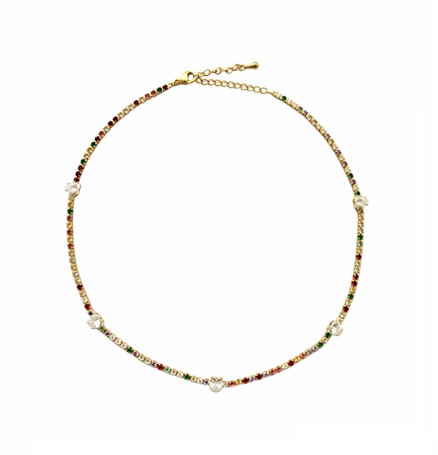 CHOKER RIVIERA COLORIDA COM CORAÇÕES CRISTAIS BANHADO A OURO