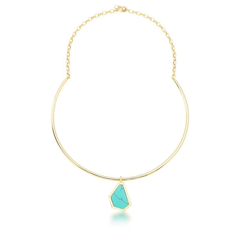 COLAR ARO COM PINGENTE ASSIMÉTRICO TURQUESA BANHADO A OURO