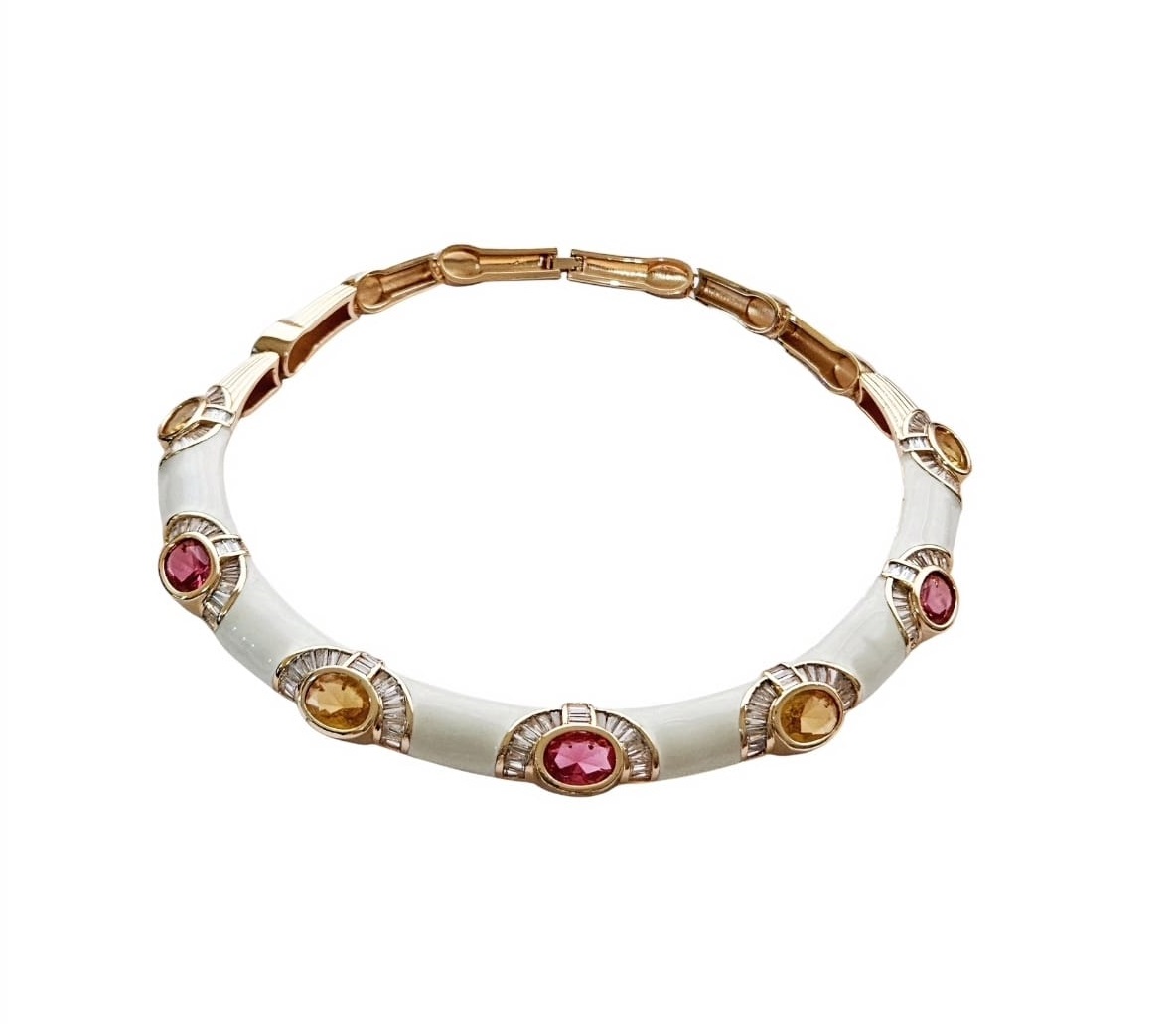 COLAR ARO ESMALTADOS COM ZIRCÔNIAS OVAIS COLORIDAS BANHADO A OURO