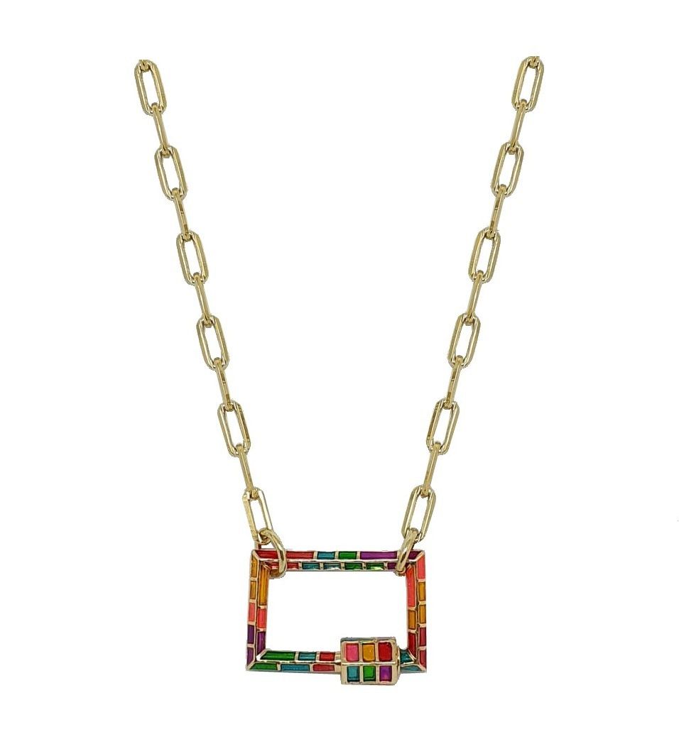 COLAR COM PINGENTE RETANGULAR ESMALTADO BANHADO A OURO