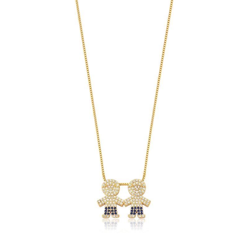 COLAR COM DOIS MENINOS CRAVEJADOS BANHADO A OURO