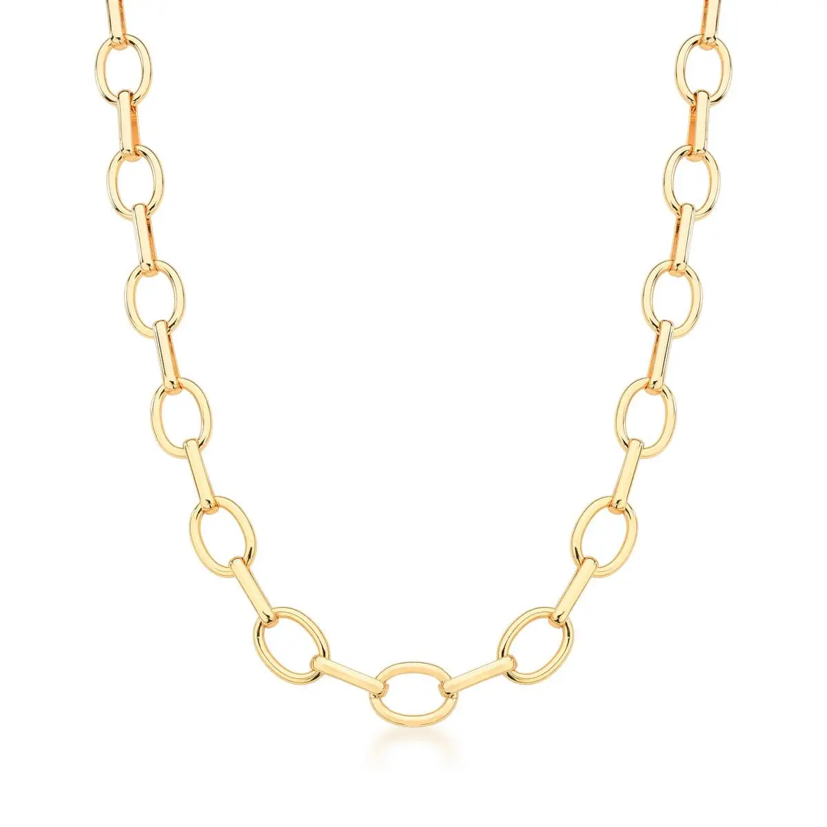 COLAR COM ELOS LISOS INTERCALADOS BANHADO A OURO