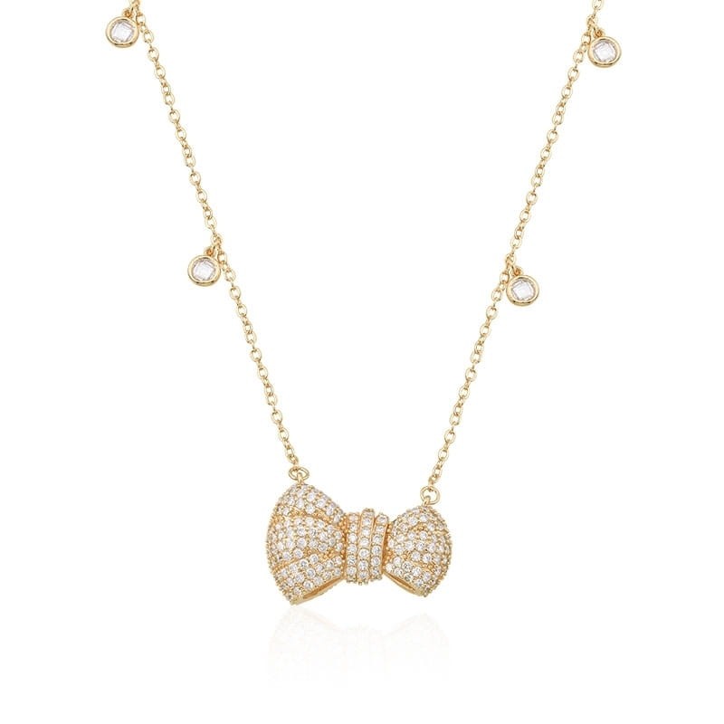 COLAR COM LAÇO CRAVEJADO E PONTOS DE LUZ BANHADO A OURO