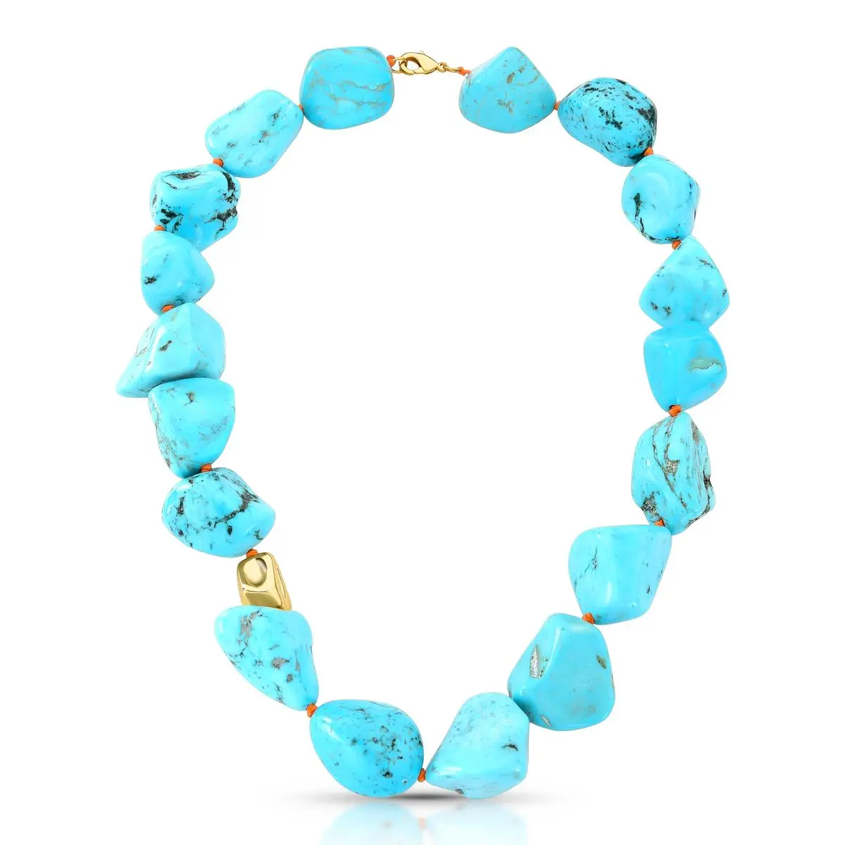 COLAR COM PEDRAS HOWLITA TURQUESA E PINGENTE LISO TRABALHADO