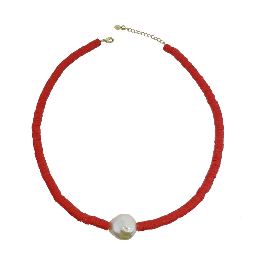 COLAR COM PÉROLA BARROCA CENTRAL E LATERAL EMBORRACHADA BANHADO A OURO