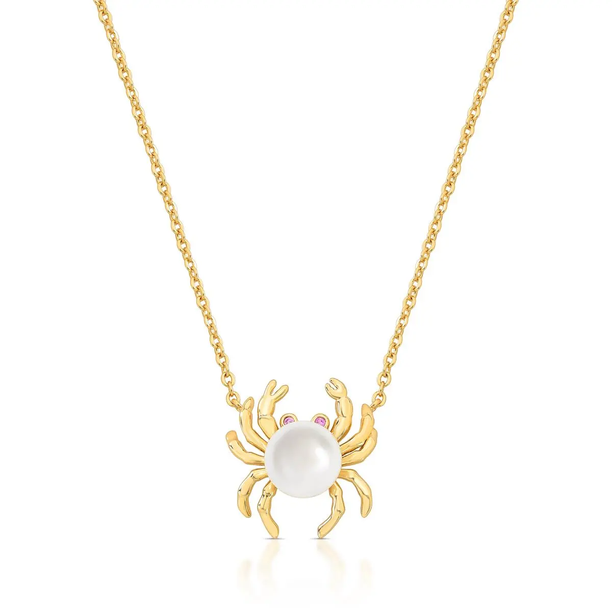 Colar com Pingente de Caranguejo e Pérola Shell Banhado a Ouro