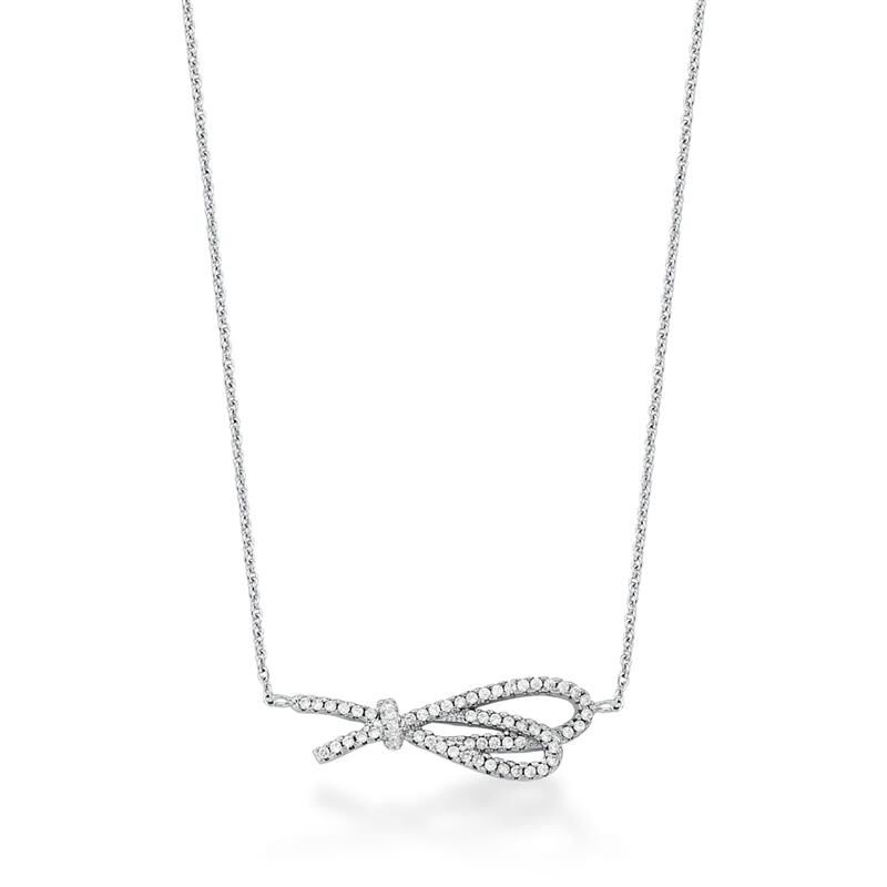 COLAR COM PINGENTE DE LAÇO VAZADO ZIRCÔNIA BANHADA A RÓDIO