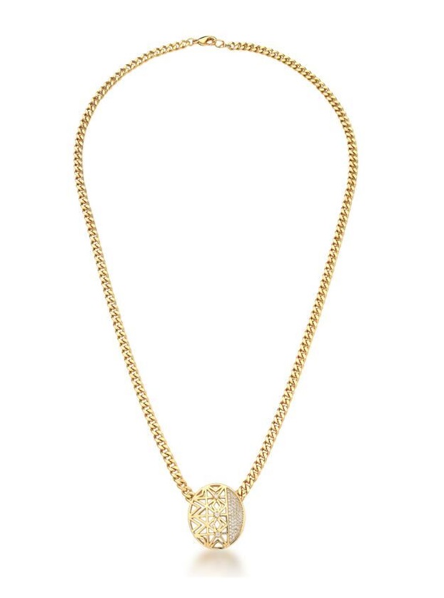 COLAR COM PINGENTE DE OVAL GEOMETRICO BANHADO A OURO