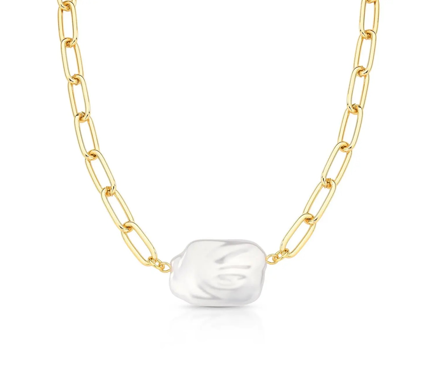 Colar com Pingente de Pérola Retangular Banhado a Ouro