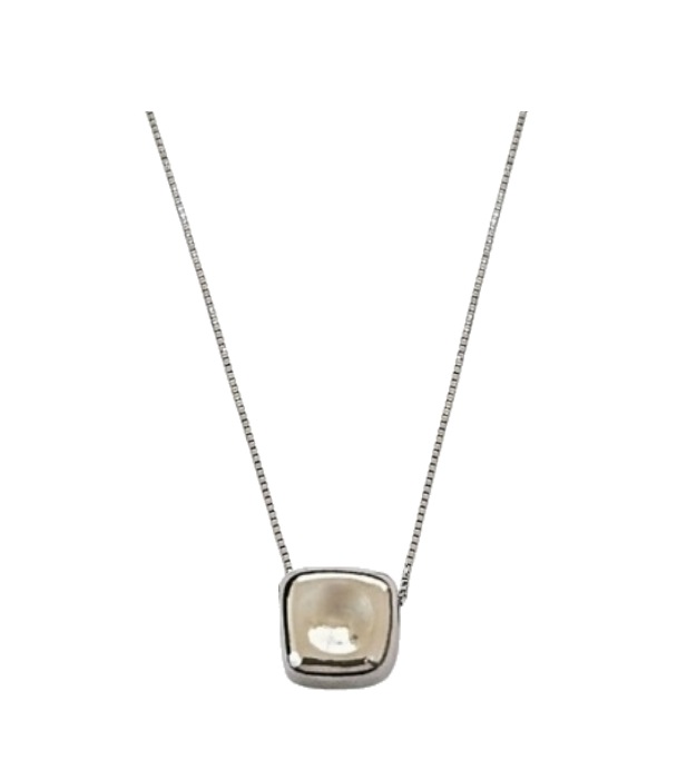 COLAR COM PINGENTE QUADRADO G ORGÂNICO BANHADA A RÓDIO BRANCO