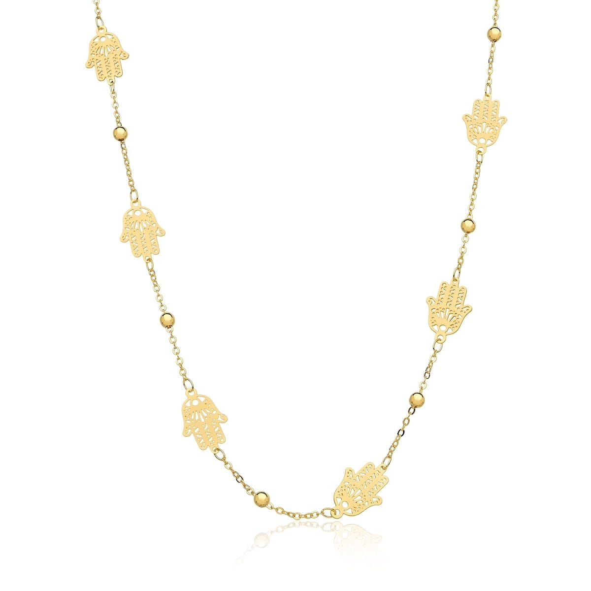 COLAR LONGO COM PINGENTES MÃO DE FÁTIMA BANHADO A OURO