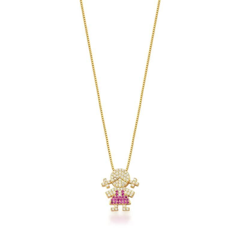 COLAR COM UMA MENINA CRAVEJADA BANHADO A OURO