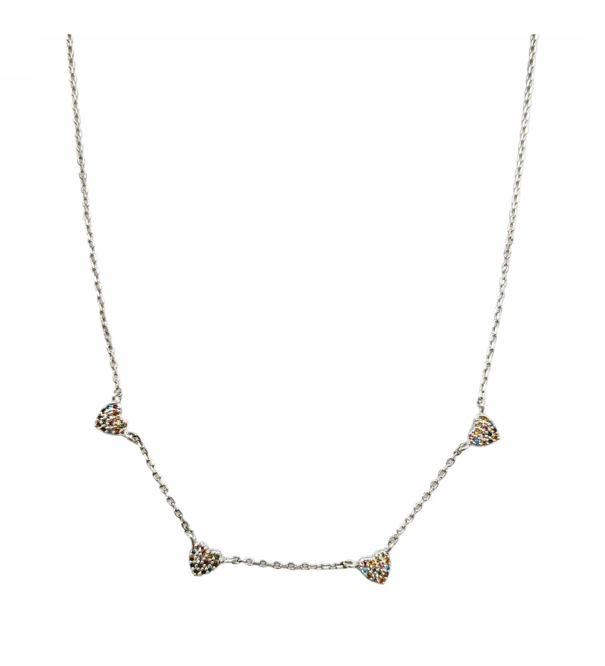 COLAR CORAÇÕES CRAVEJADOS COLORIDOS BANHADA A RÓDIO BRANCO