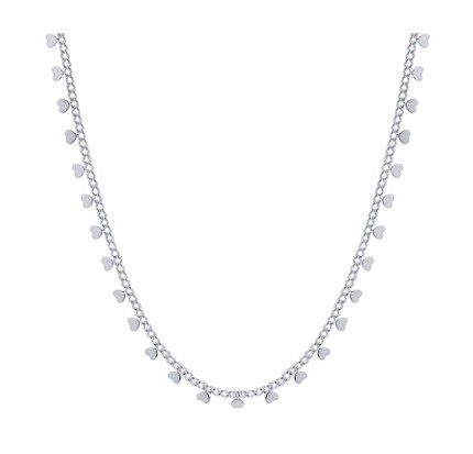 COLAR CURTO COM MINI CORAÇÕES LISOS BANHADO A RÓDIO BRANCO