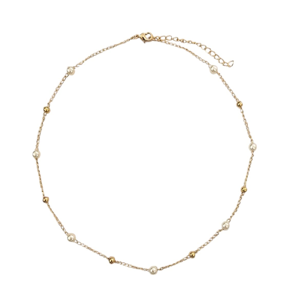 COLAR CURTO COM MINI ESFERAS E PÉROLAS BANHADO A OURO