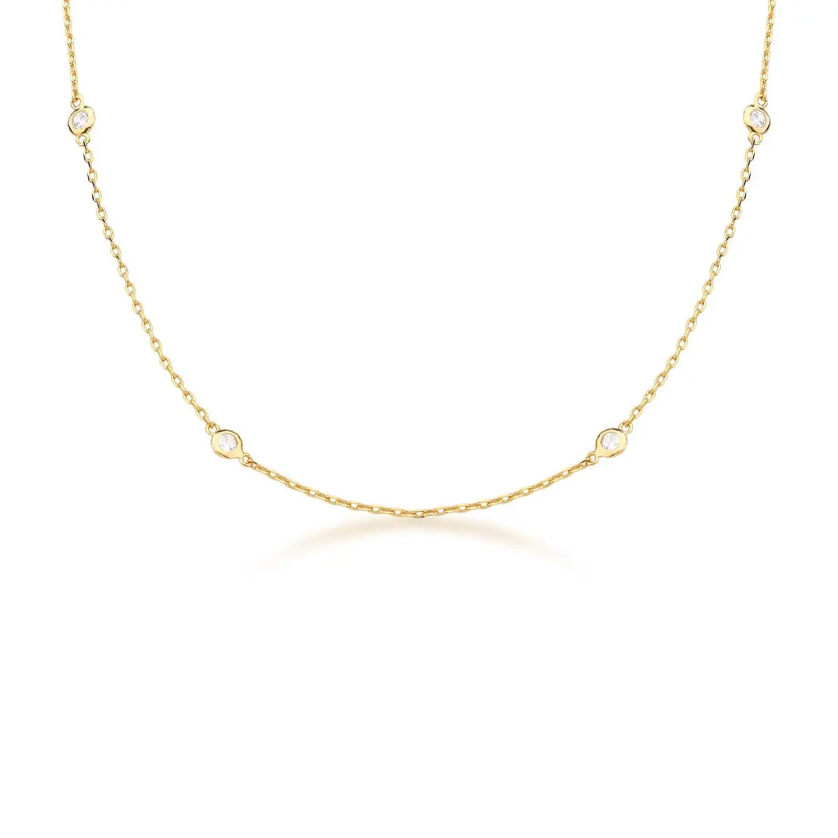 Colar Curto Pontos de Zircônia Esparsos Banhada a Ouro