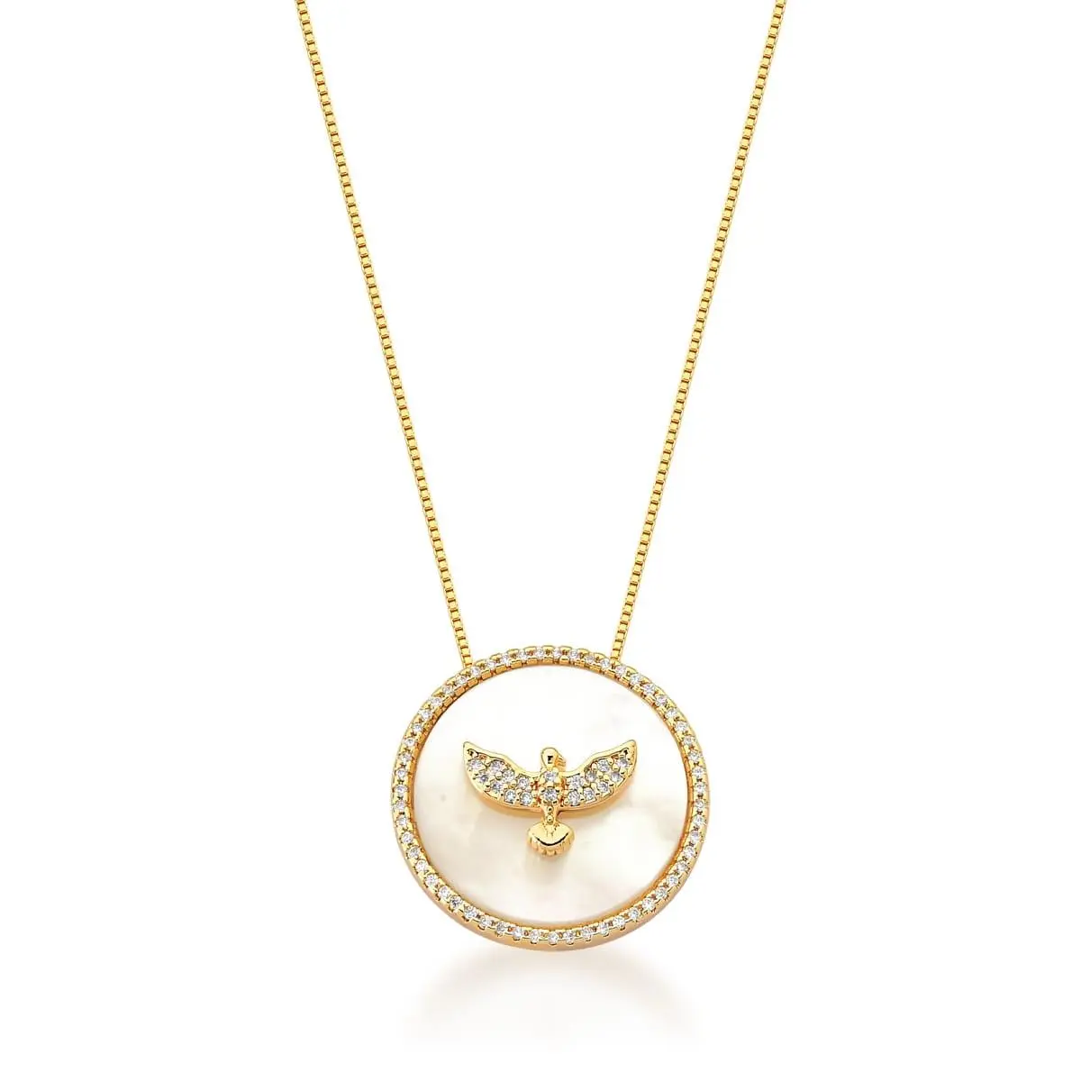 COLAR DIVINO ESPÍRITO SANTO EM MADREPÉROLA E ZIRCÔNIAS BANHADO A OURO