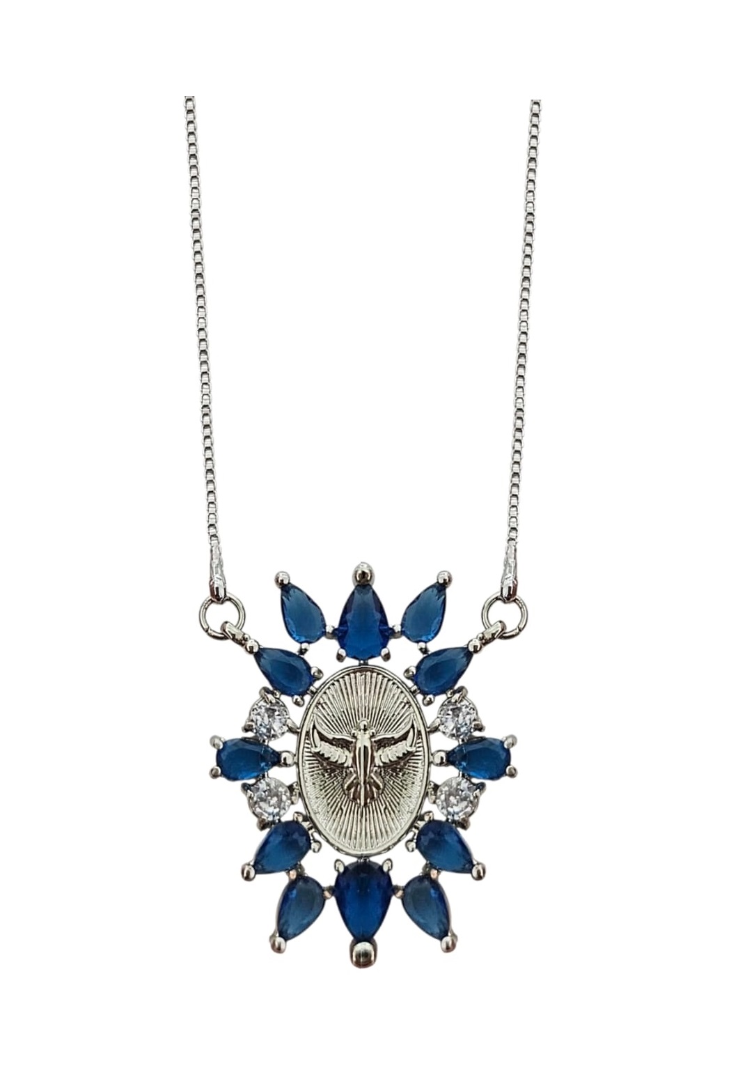 COLAR DIVINO ESPÍRITO SANTO ZIRCÔNIA TOPÁZIO BANHADO A RÓDIO BRANCO