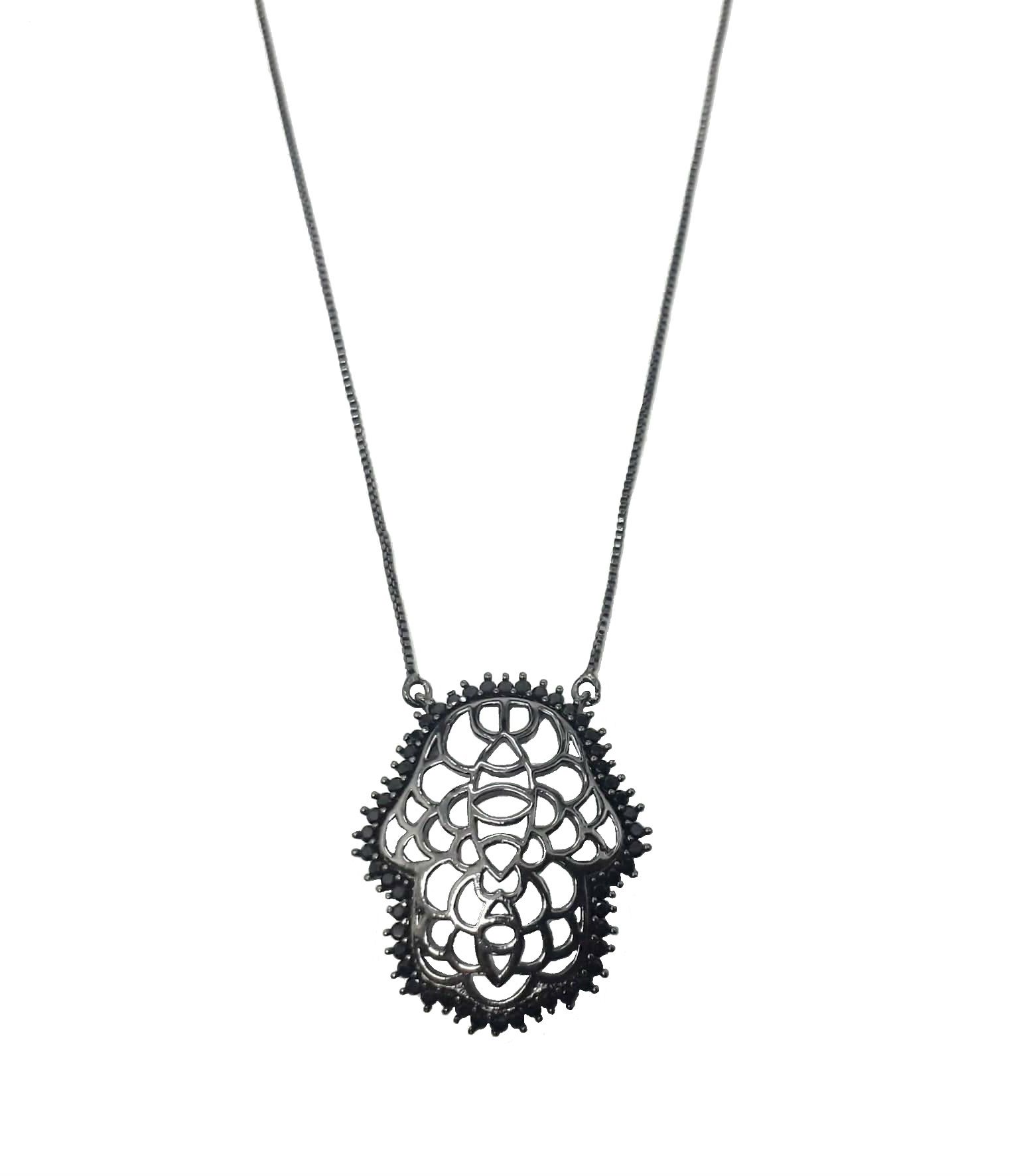 COLAR MÃO DE FÁTIMA COM CRAVAÇÃO LATERAL BANHADO A RÓDIO NEGRO