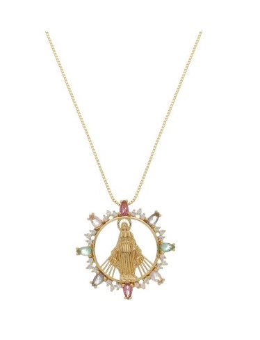COLAR NOSSA SENHORA DAS GRAÇAS COM CRAVAÇÃO LATERAL COLORIDA BANHADO A OURO