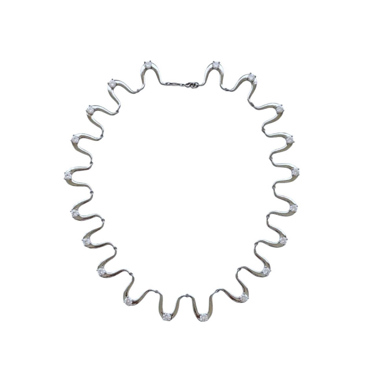 COLAR ONDAS COM PONTOS DE ZIRCÔNIA BANHADO A RÓDIO