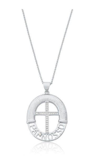 COLAR PAI NOSSO COM CRUZ CRAVEJADA BANHADO A RÓDIO BRANCO