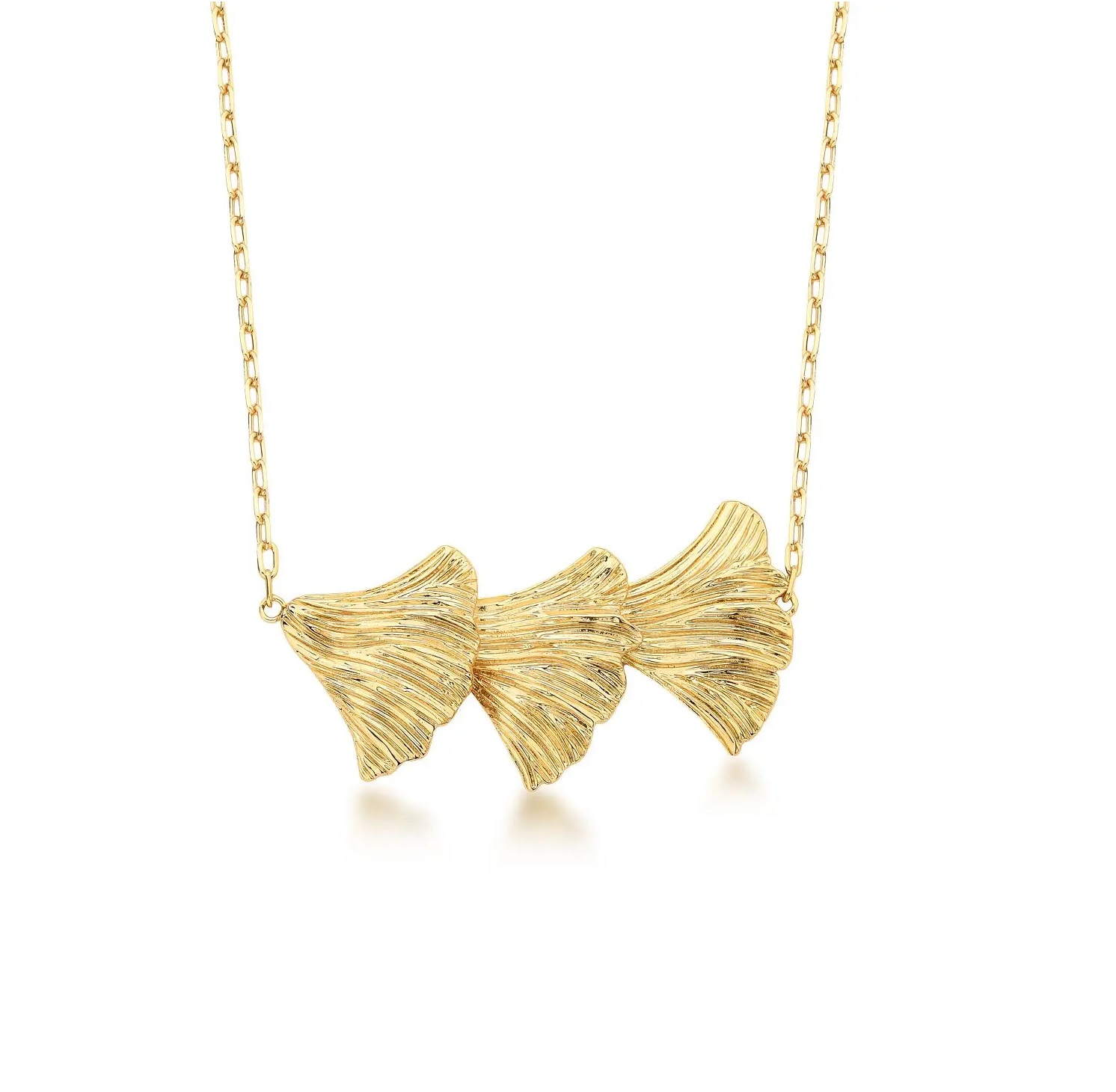 Colar Pétala de Flor Texturizado Liso Banhado a Ouro