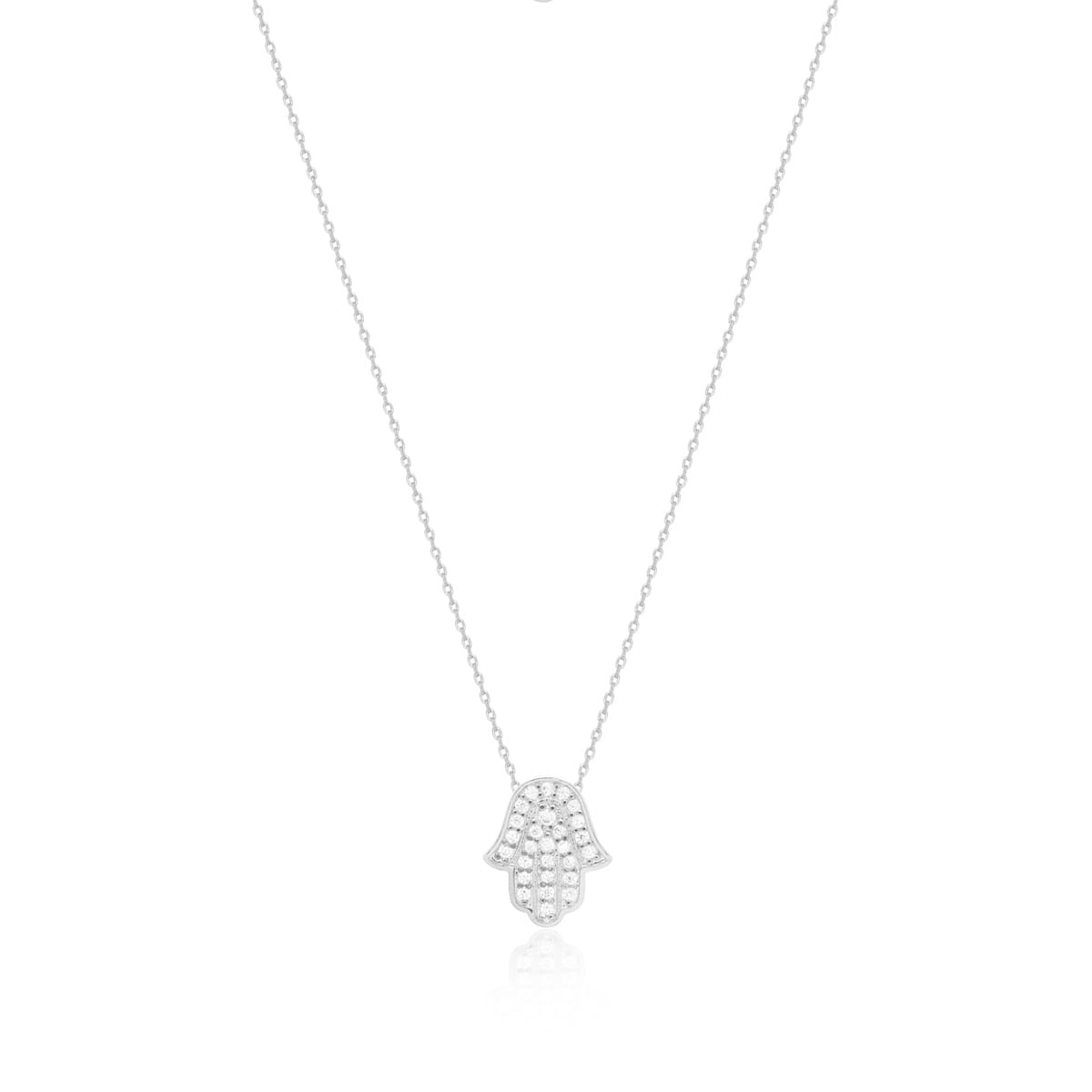 Colar Pingente Hamsa Banhado a Ródio Branco