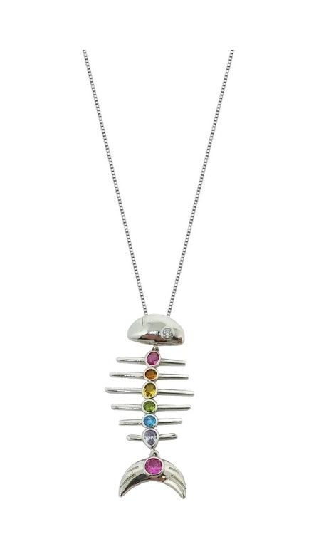 COLAR PINGENTE PEIXE CRAVEJADO BANHADO A RÓDIO BRANCO