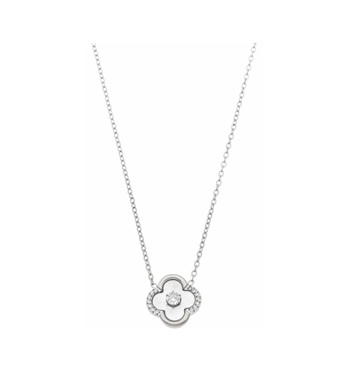 COLAR PINGENTE TREVO MADREPÉROLA COM CRAVAÇÃO LATERAL EM AÇO
