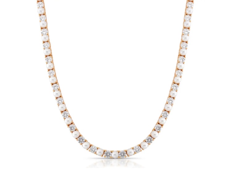 Colar Riviera com Pérolas e Zircônias Banhado a Ouro