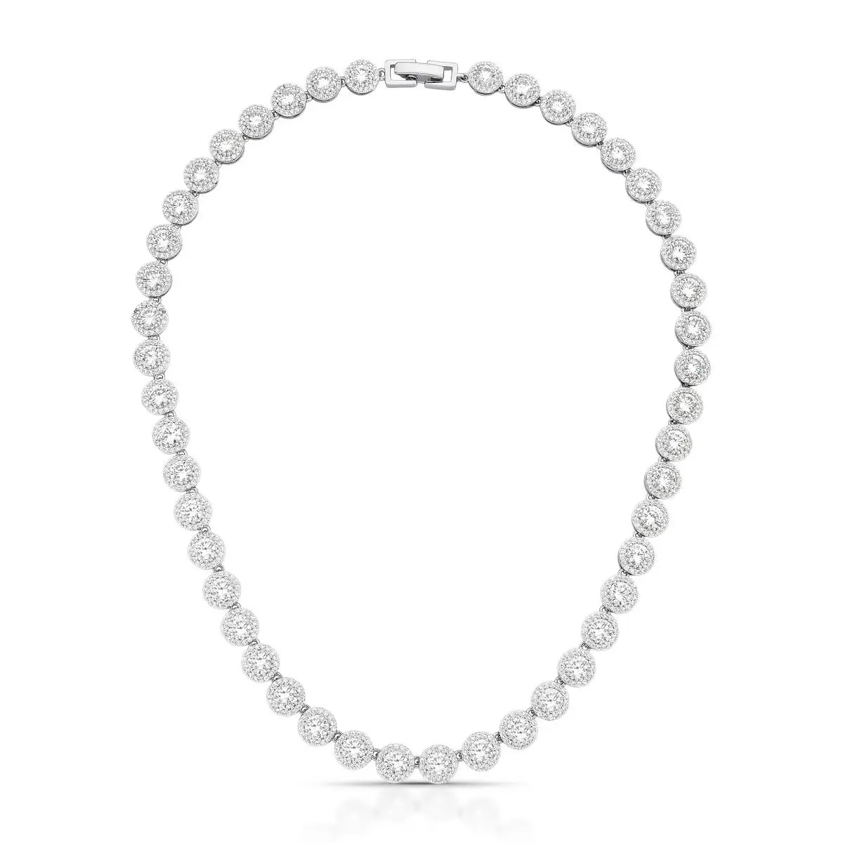 Colar Riviera Redonda Cravejada Banhado a Ródio Branco