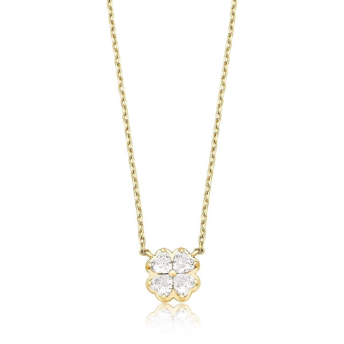 COLAR TREVO CRISTAL BANHADO A OURO