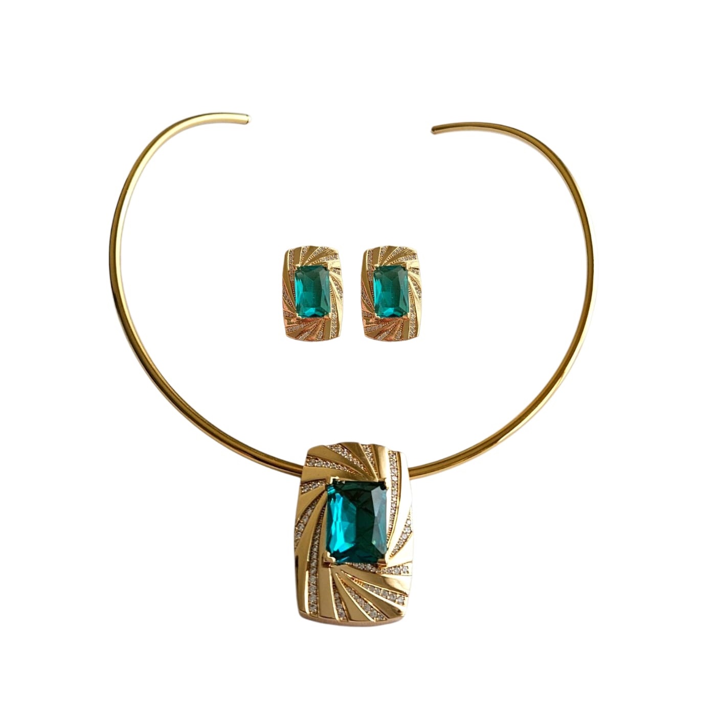 CONJUNTO ARO E BRINCO PEDRA TURMALINA BANHADO A OURO