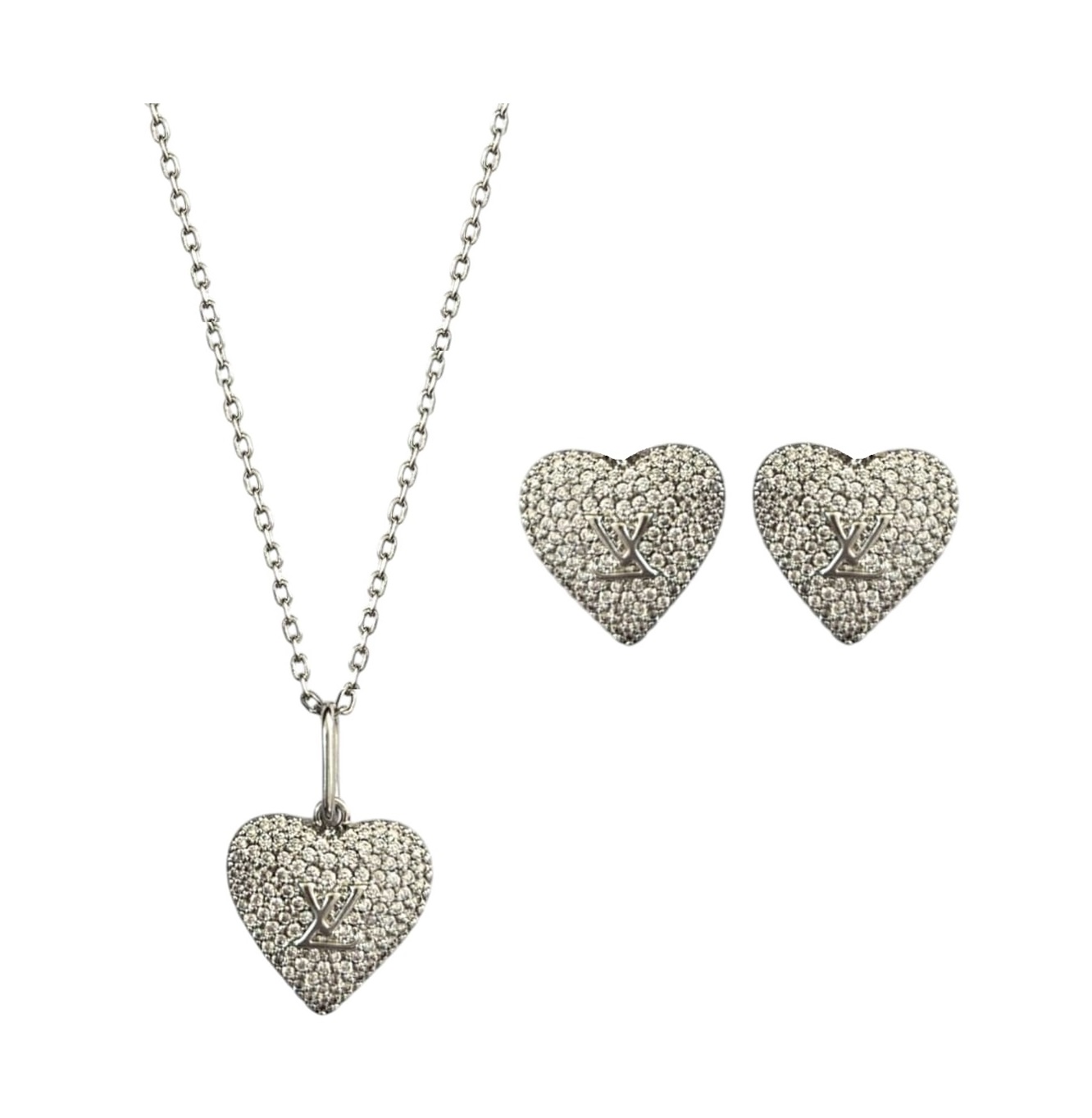 CONJUNTO CORAÇÃO CRAVEJADO LV BANHADO A RÓDIO BRANCO