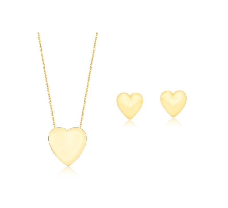 CONJUNTO CORAÇÃO LISO BANHADO A OURO