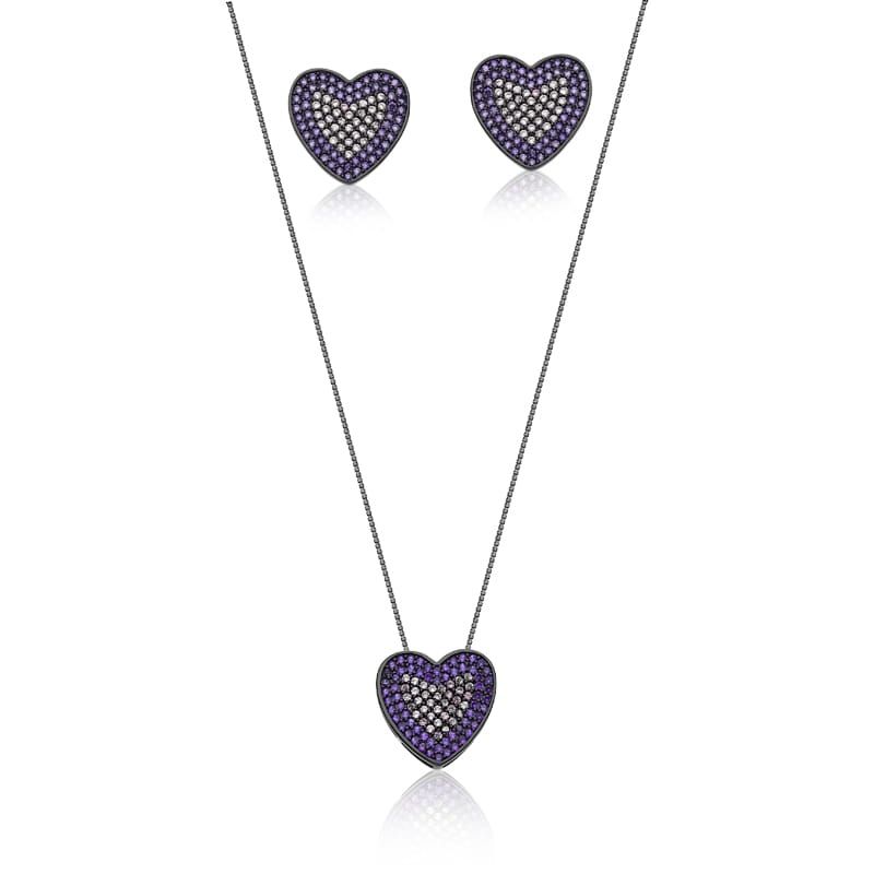 CONJUNTO CORAÇÃO MICROCRAVEJADO BANHADO A RÓDIO NEGRO