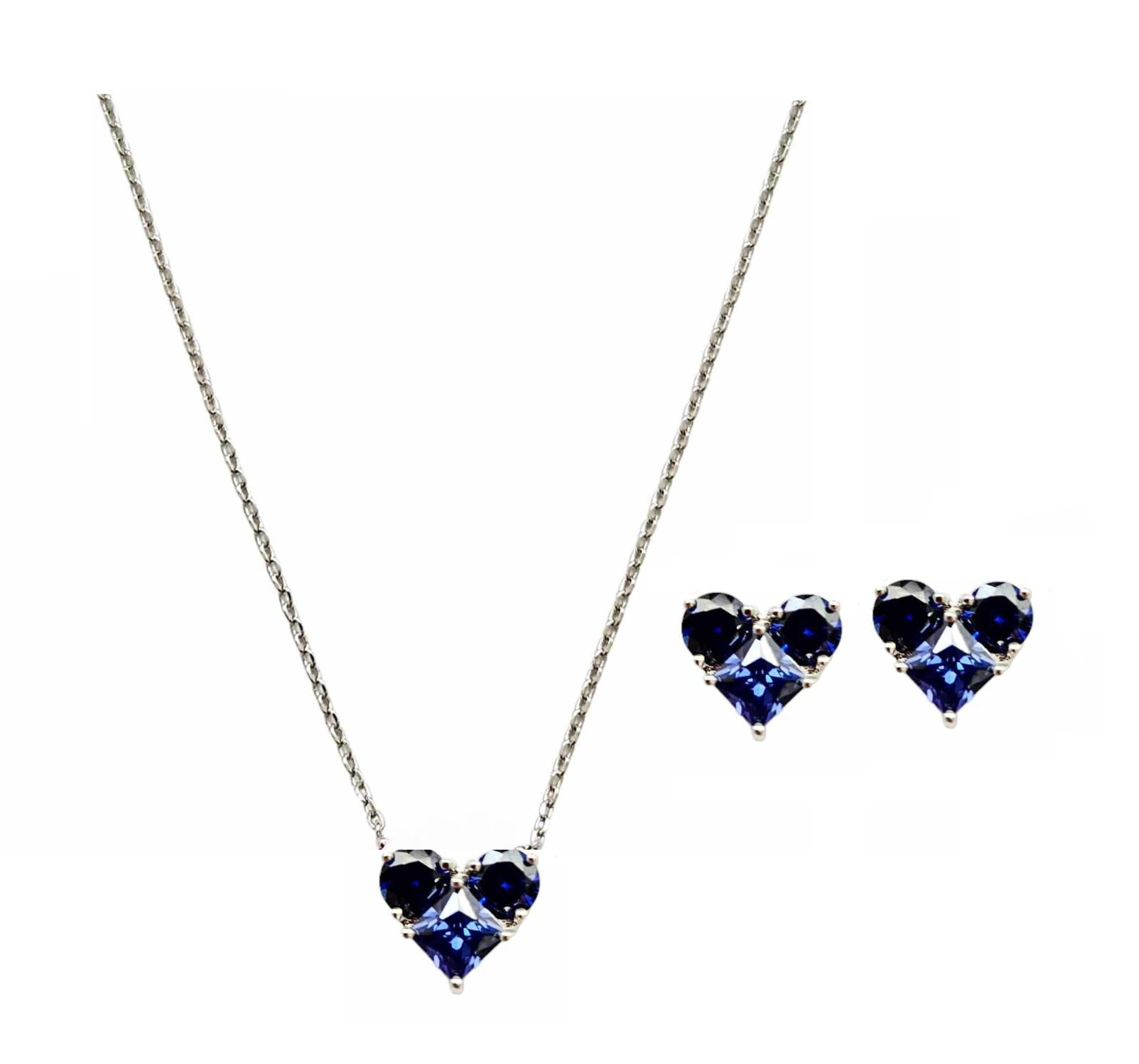 CONJUNTO CORAÇÃO TANZANITA BANHADO A RÓDIO BRANCO