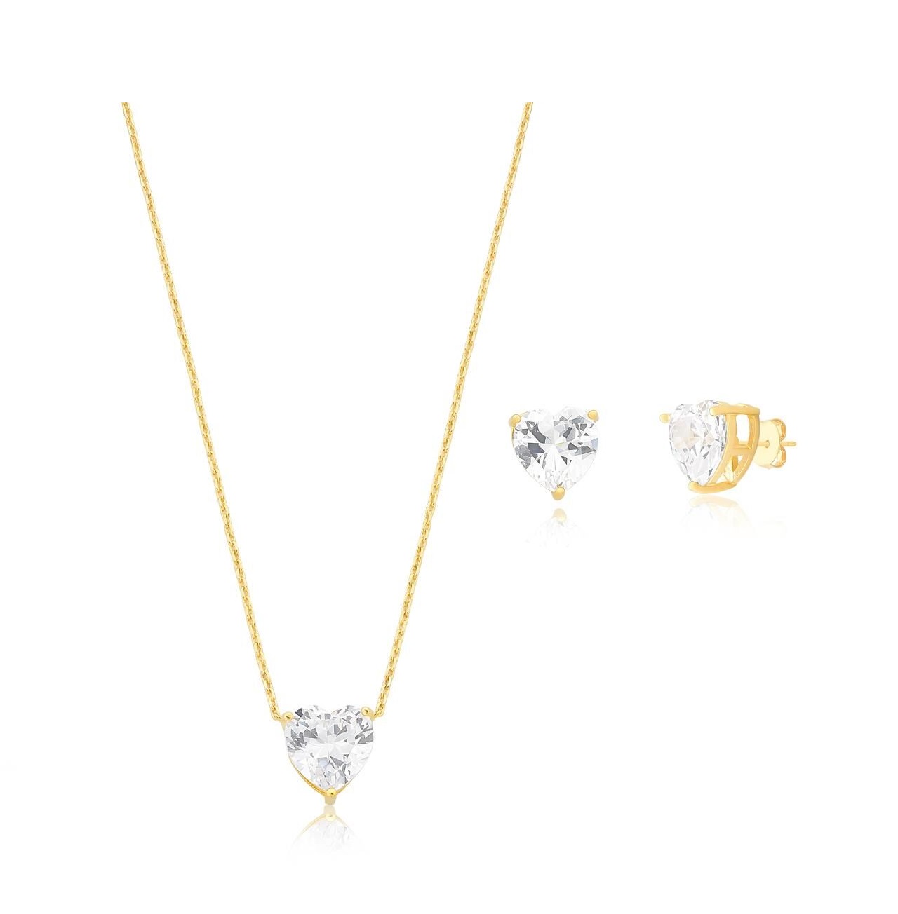 CONJUNTO CORAÇÃO ZIRCÔNIA CRISTAL BANHADO A OURO