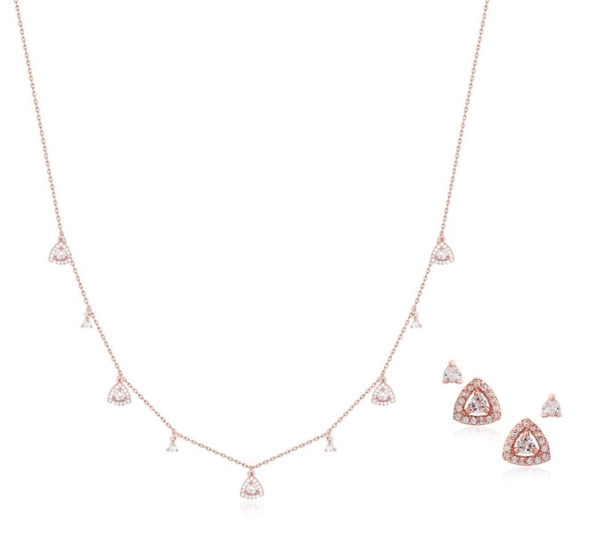 Conjunto de Colar com Dupla de Brincos Triagulares Banhado a Ouro Rosê