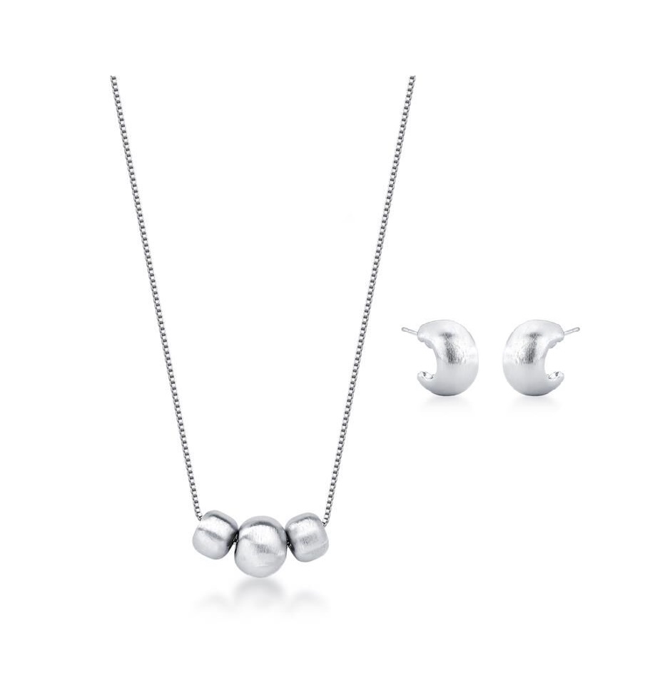 CONJUNTO ESFERAS LISAS BANHADO A RÓDIO BRANCO ACETINADO