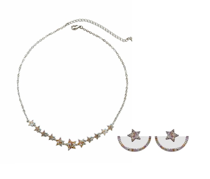 CONJUNTO ESTRELAS COM CRAVAÇÃO COLORIDAS BANHADO A RÓDIO BRANCO