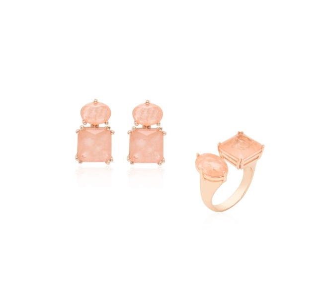 CONJUNTO GEOMÉTRICO MORGANITA FUSION BANHADO A OURO ROSÊ
