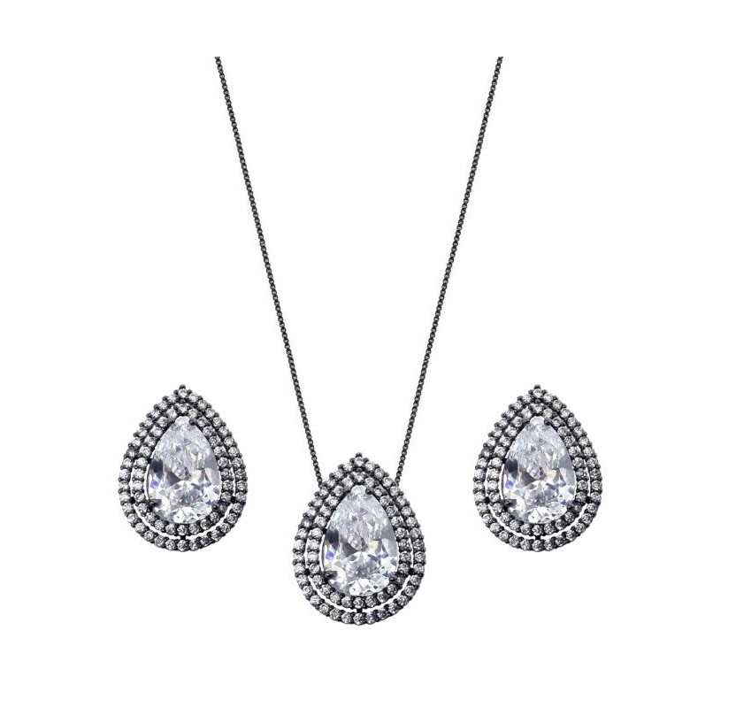 CONJUNTO GOTA LUXO ZIRCÔNIAS CRISTAIS BANHADO A RÓDIO NEGRO