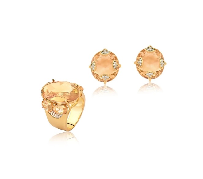 CONJUNTO LUXO AMBAR BANHADO A OURO