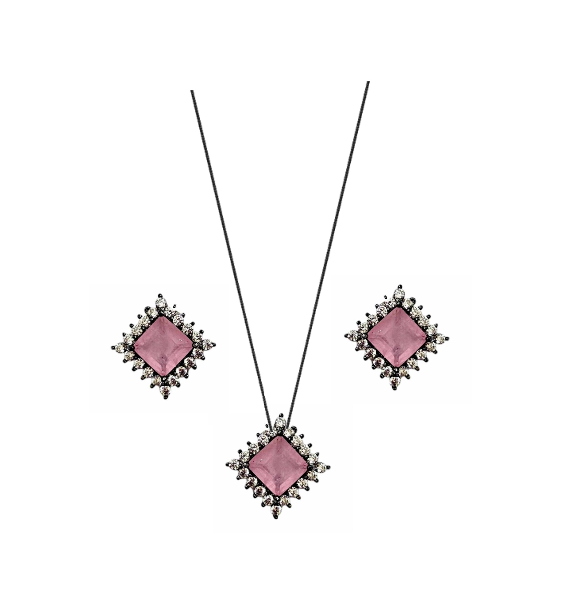 CONJUNTO QUADRADO LIGHT PINK COM CRAVAÇÃO LATERAL CRISTAL