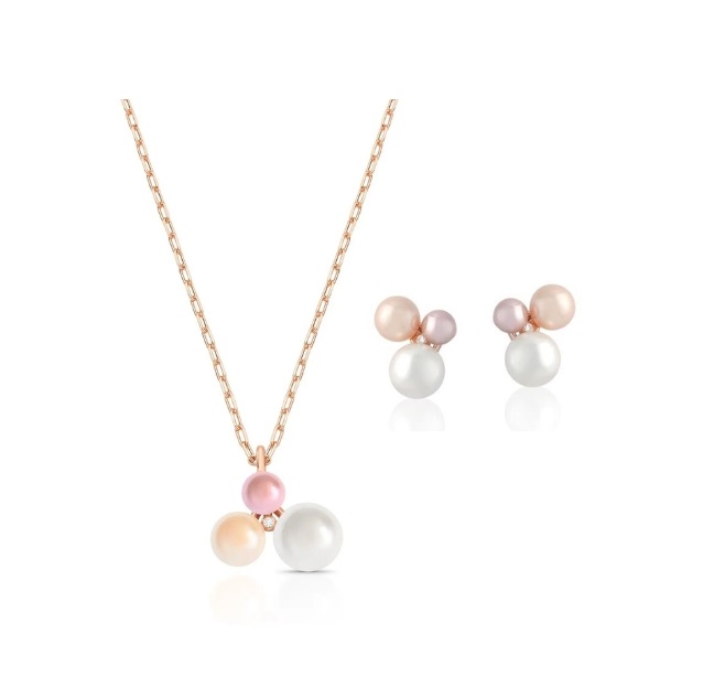 CONJUNTO TRIO DE PÉROLAS EM TONS BANHADO A OURO ROSÊ