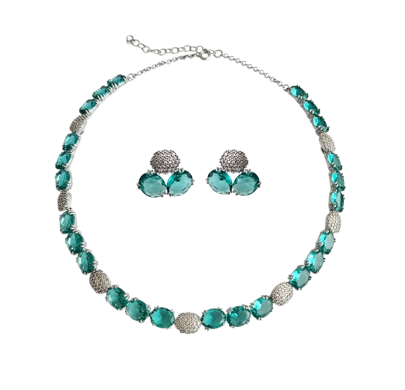 Conjunto Turmalina Intercalado Banhado a Ródio Branco