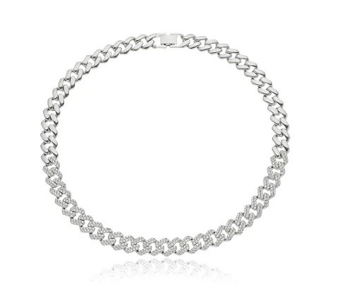 CORRENTE LUXO COM CRAVAÇÃO FRONTAL BANHADA A RÓDIO BRANCO