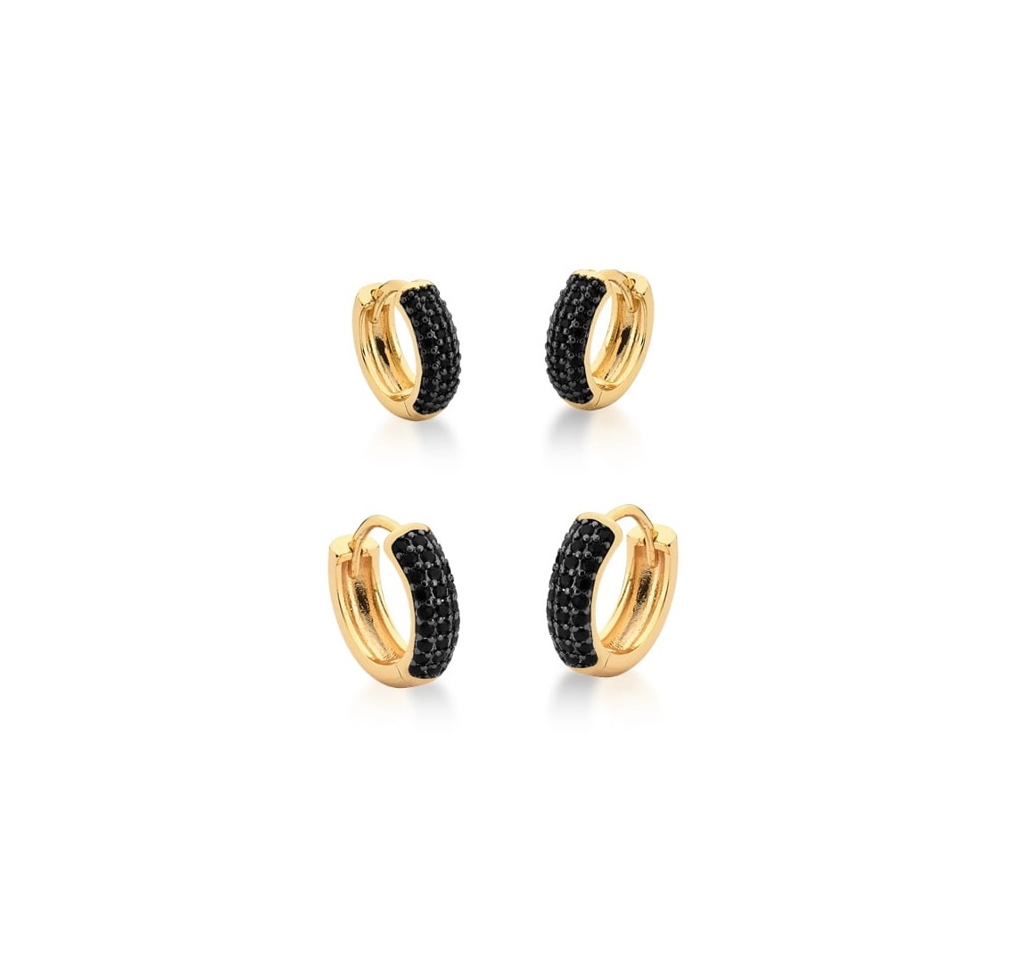 DUPLA DE ARGOLAS COM CRAVAÇÃO FRONTAL NEGRA BANHADO A OURO
